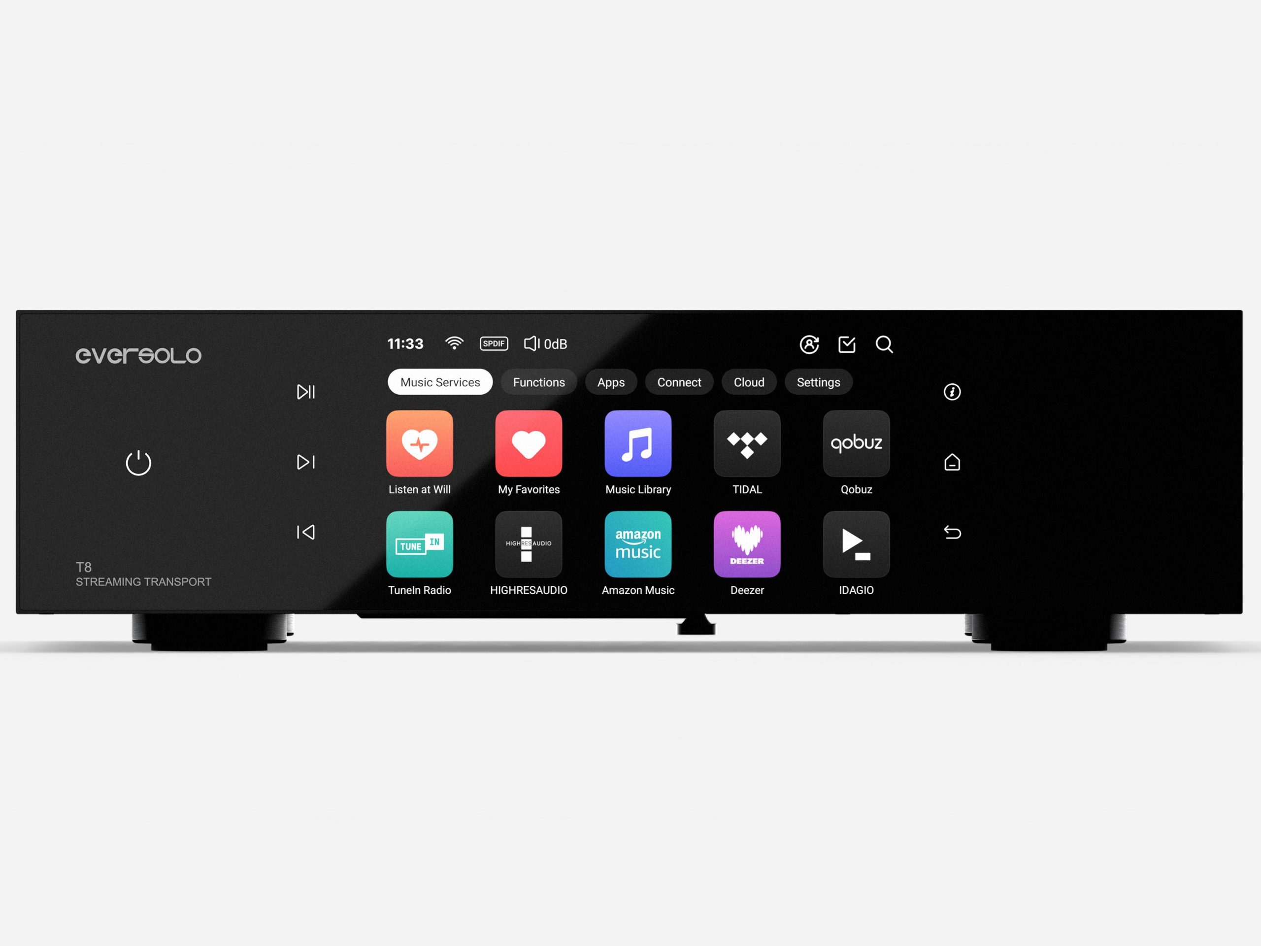 Built-in support for mainstream global music services, deeply integrated with TIDAL, Qobuz, IDAGIO, Amazon Music, TuneIn Radio, Presto Music, KKBOX, Radio Paradise, Deezer, and more. With T8, your life is always accompanied by the world’s pristine sound. Eversolo works seamlessly with these streaming services to deliver a system-level experience. No third-party apps needed—built-in native APIs ensure the highest quality playback.