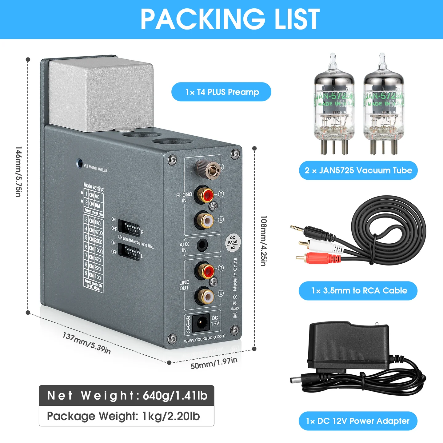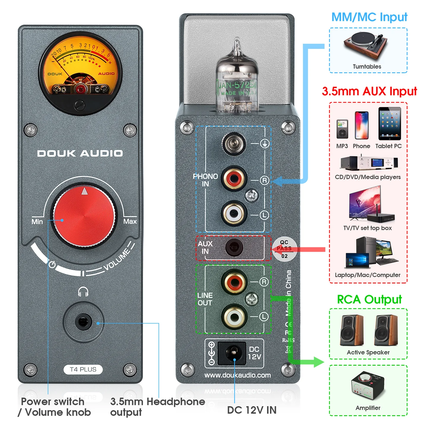 Douk Audio T4 PLUS HiFi προενισχυτής Phono λυχνίας για πικάπ με προενισχυτή ακουστικών και VU μετρο